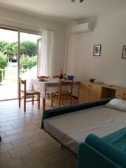 B4: az apartman kb. 45 m², nappali konyhasarokkal és kinyitható dulpa ággyal, háló dupla ággyal, Z/WC. |